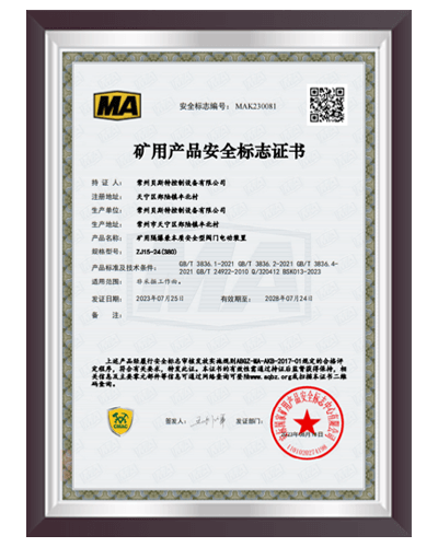 于2000年通過 ISO9001:2000質(zhì)量體系認證,建立了完善的產(chǎn)品質(zhì)量控制體系;2006 年6月取得全國工業(yè)產(chǎn)品生產(chǎn)許可證;2008年9月取得礦用產(chǎn)品安全標志證書;2012年取得8項礦用產(chǎn)品的專利證書。